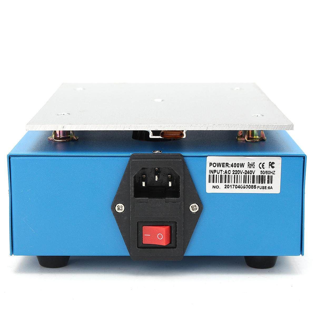 : Blue Size: Approx. 21 x 26.5 x 9cm/8.27 x 6.50 x 3.54'' Heating Pannel Size: Approx. 20 x 15cm/7.87 x 5.91'' Powe Supply: 220V (50Hz-60HZ) Plug: AU Plug : 400W Temperature Range: 0 °- 200 ° Application Range: Separation the different cover plate, LCD and so on