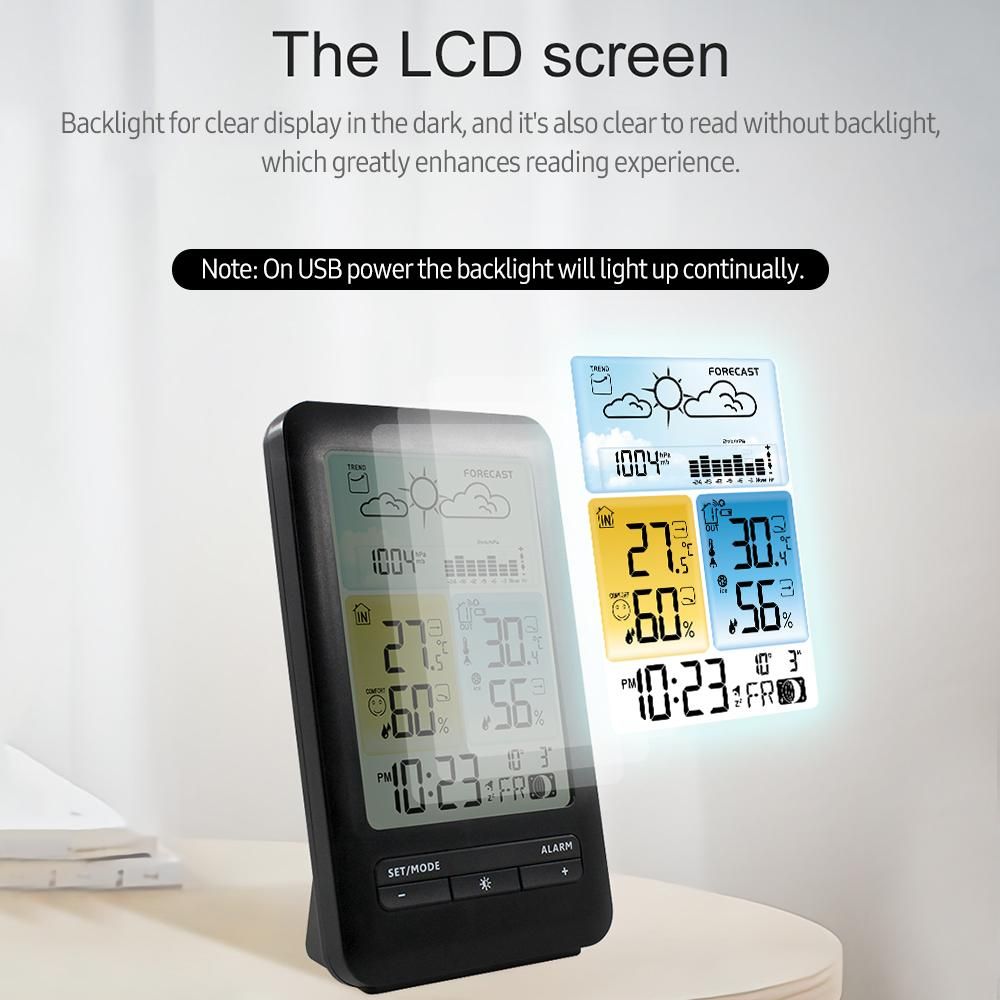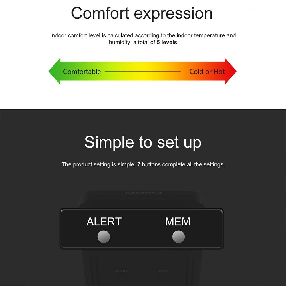 Buy LCD Weather Station Alarm Clock with Snooze Digital Indoor Outdoor Temperature Humidity Monitor Thermohygrometer with Backlight/ Date/ Week/ Moon Phase/ Comfort Level/ Alarm Function for Home Office Greenhouse Warehouse in Nigeria