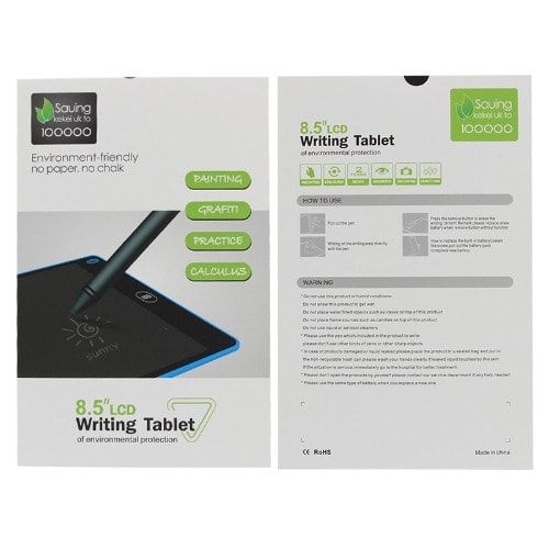 Key features... Simple to use drawing tablet with large 8.5-inch lcd display thin, lightweight, compact, and durable great tool for teaching children how to write and draw eco-friendly alternative to traditional paper notes dimensions main product dimensions: 227 x 146 x 4.8 mm (l x w x d) package contents lcd writing tablet stylus pen
