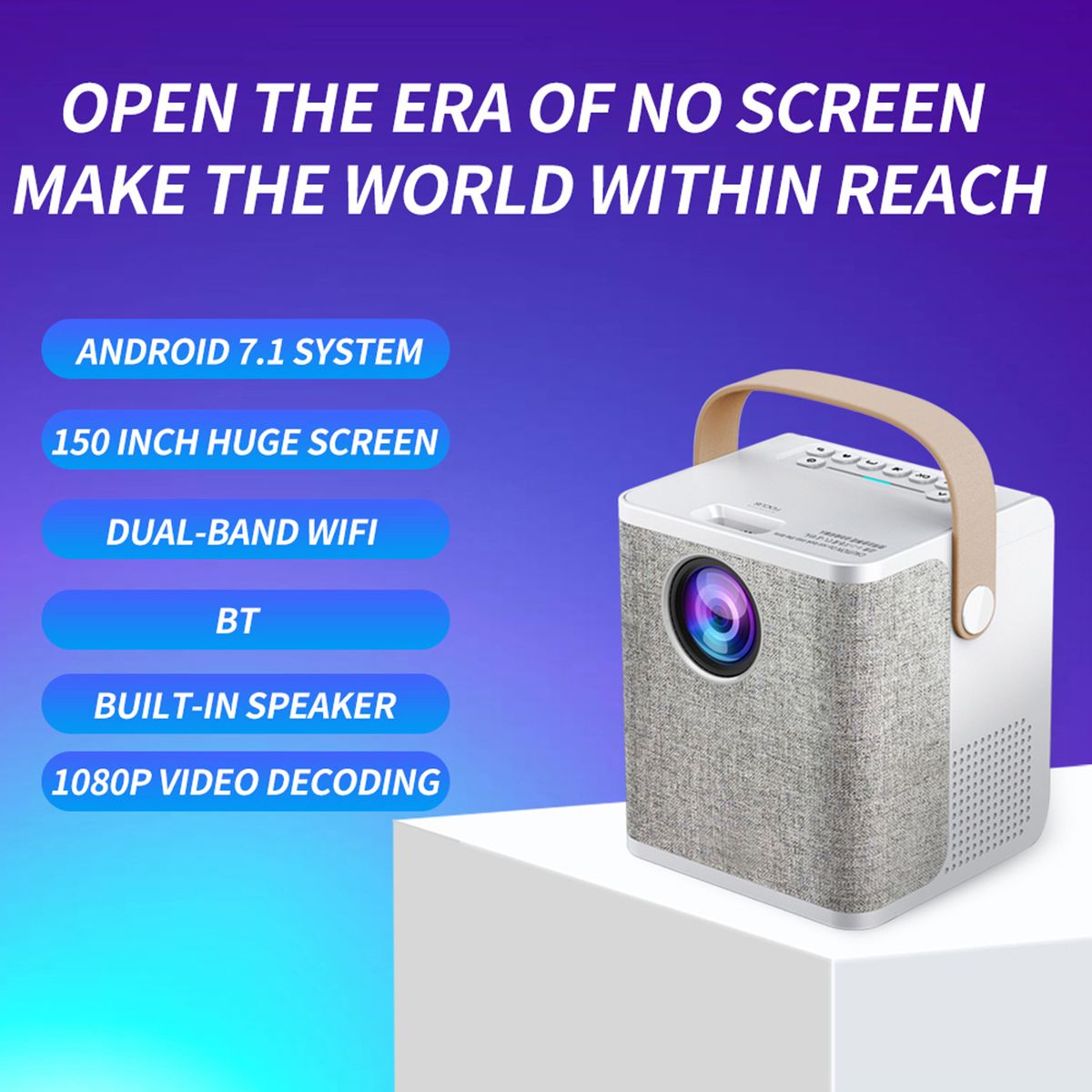 Your Home Theater:It can work as a max. 150-inch screenless TV. With a remote controller, convenient to use. Compact and portable design with leather handle makes it easy to carry from bedroom to living room.