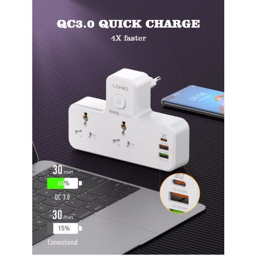 Buy Ldnio 1 USB-c & 2usb-a 2 Outlets - pd & Qc3.0 in Nigeria