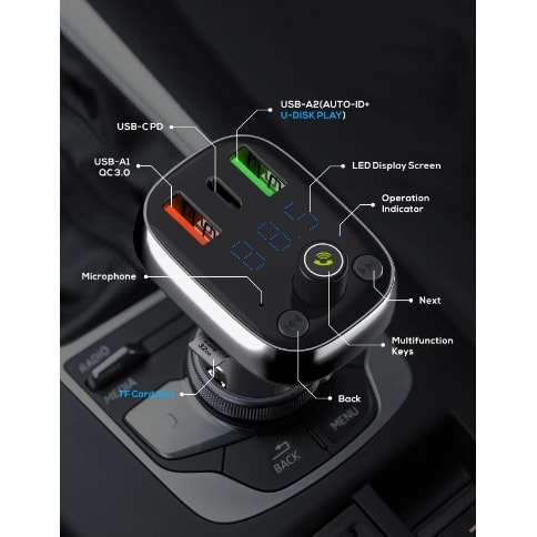 Ldnio C704q Usb Car Charger With Bluetooth Fm Transmitter - Triple Usb Charger