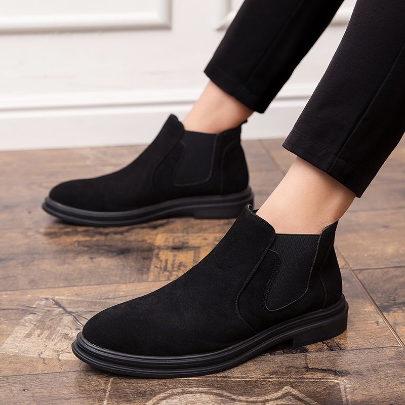 Buy Leather Boots Men Chelsea Boots Suede Leather Shoes Vintage Classic Male Casual Motorcycle Boot in Nigeria