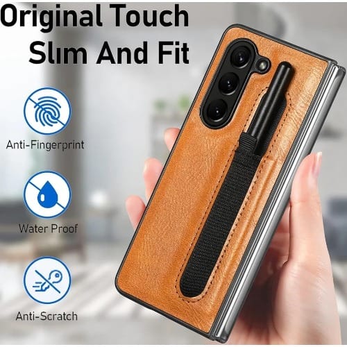 Samsung Galaxy Z fold 4 Cover with Pen Grip with Protection The case offers excellent non slip grip with its design making\it comfortable to hold the phone even with one hand When unfolded, the case offers a raised edge on all the sides thereby protecting the screen and the fine hole camera cut-out is given for better lens protection The case is anti-water marks anti oil marks anti fingerprint and easy to clean High sensitivity touch feeling Impact damping to protect your screen from damaging & lt;chrome_annotation role="link" & gt;360 & deg; Protection with Built in Non-Slip Stripe which protect your phone from falling Precise cutouts of camera and screen to prevent your z fold 4 phone case against shook proof scratches fingerprints bumps and accidental drops