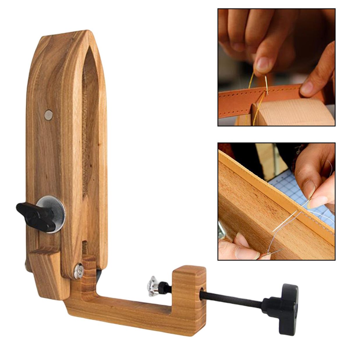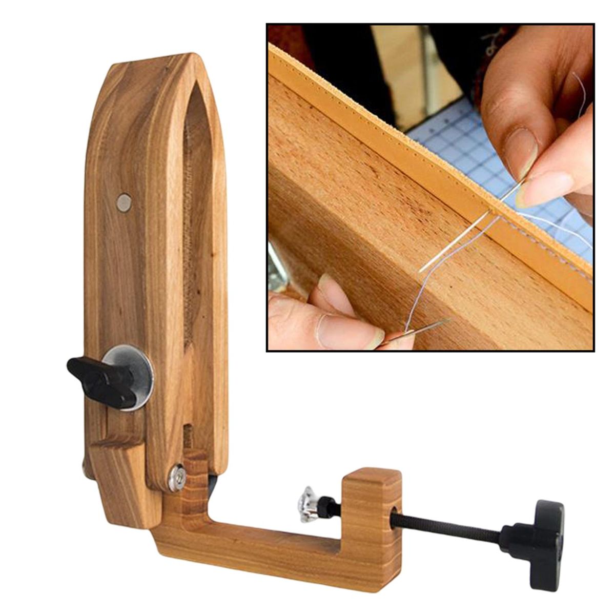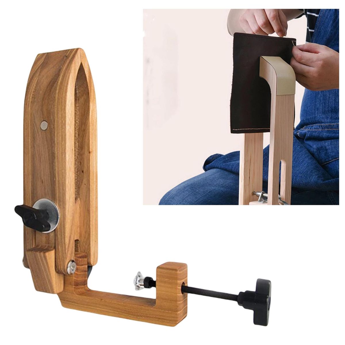 Adjustable angle hand sew wooden clamp. Perfect for DIY your belt, bag, leather, wallet, purse, pocketbook, wrapped, polished, etc.Used to fix on the desktop, protect your hand and make you more efficiency at the same time.DIY sewing easily, it suit most sizes of the clamping needs.Made of high quality wood, practical and durable. Foldable, easy to store.Used for leather lacing, hand sewing Stitching or other leather crafts.