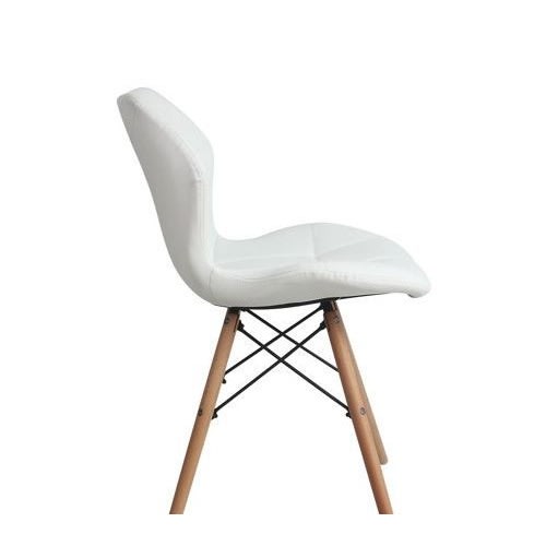 DINNING LEATHER CHAIR WITH WOODEN LEG- SET OF 4- WHITE