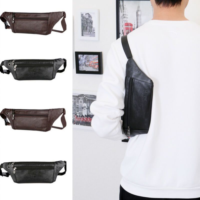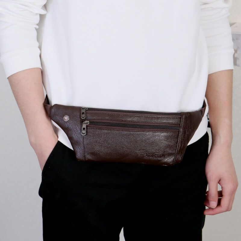1 * Leather Fanny Pack Men Mini Waist Belt Bag Purse Hip Small