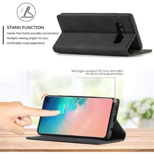 Premium Pu Leather: The classic leather case is made of soft & premium polyurethane material with the intention of protecting your phone from dents, scratches, or any other daily wear for keeping your phone securely in place and enjoying a great look with high-quality leather-effect design.Built-In Kickstand: This wallet case has stand function which will bring you more convenience for movie-watching with multi-viewing angles, hanging out with friends on face time, and taking timed group photos.Large Capacity Wallet Design: This PU leather book pouch case is designed with specifically several storage slots inside so that you can carry around your id, credit/debit cards, and cash without having to take your wallet with you.