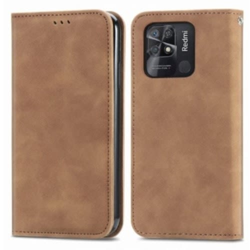 Buy Leather Flip Case For Xiaomi Redmi 10c - Brown in Nigeria
