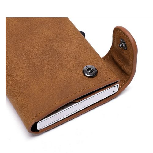CREDIT CARD POP UP WALLET ONE-CLICK CARD ACCESS - Secure your cards with a wallet that stores up to four embossed or six non-embossed cards. With one-click trigger action, this blocking credit card holder gives access to your cards in a breeze.Without a card wallet, identity thieves may easily copy the information in your credit cards. Our credit card holders protect your cards from scanning devices blocking technology.EXTRA SPACIOUS FOR YOUR VALUABLES - These trifold minimalist wallets measure 3.75" x 3.4" x 0.65". More than just a card wallet, it has enough space to store your non- embossed/embossed cards, cash and two extra cards in its internal pocket.MADE FROM HIGH QUALITY MATERIALS - Feel secured from electronic pickpocketing with our exceptional pop up wallet. Sturdy and innovative, our slim wallets are crafted from high- quality metal, carbon fiber, and genuine PU leather.