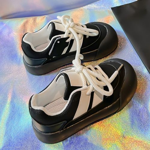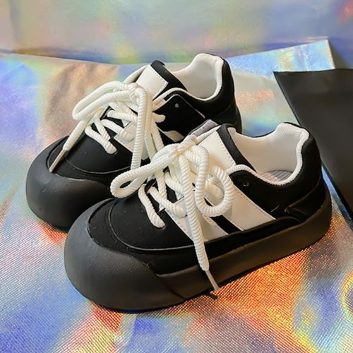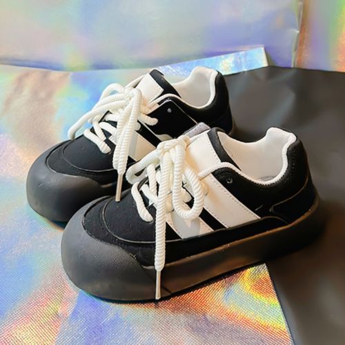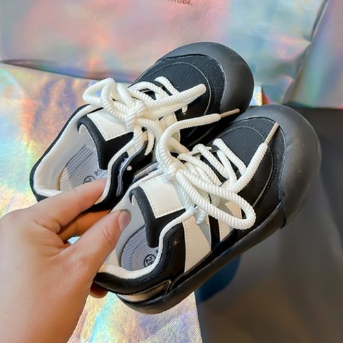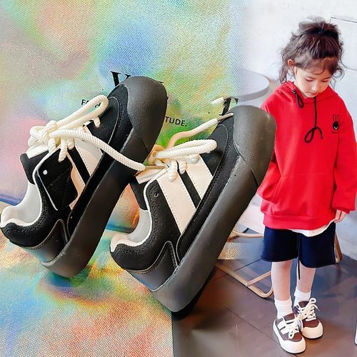 Buy Leather Running Shoes For Girls Lace-up Kids Sneakers For Girls Black in Nigeria