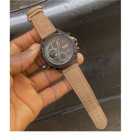 Buy Leather Strap Chrono Beige Men's Wrist Watch in Nigeria