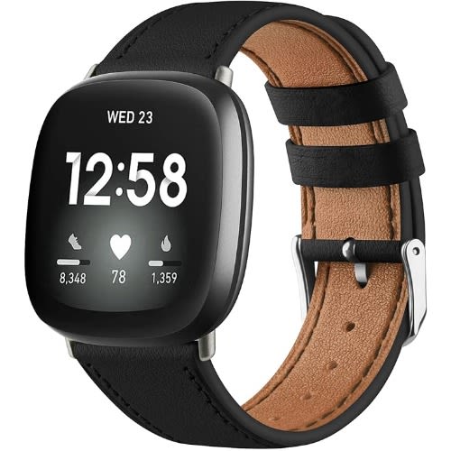 Buy Leather Straps Compatible With Fitbit Versa 4 Strap/Versa 3 - Black in Nigeria