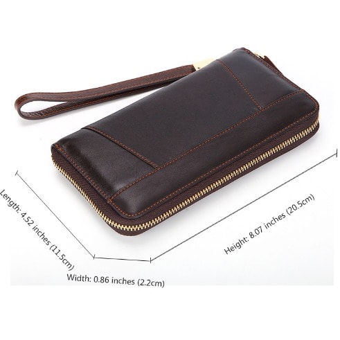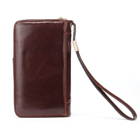 Classic Leather Men's Wallet With Hand Strap - Brown