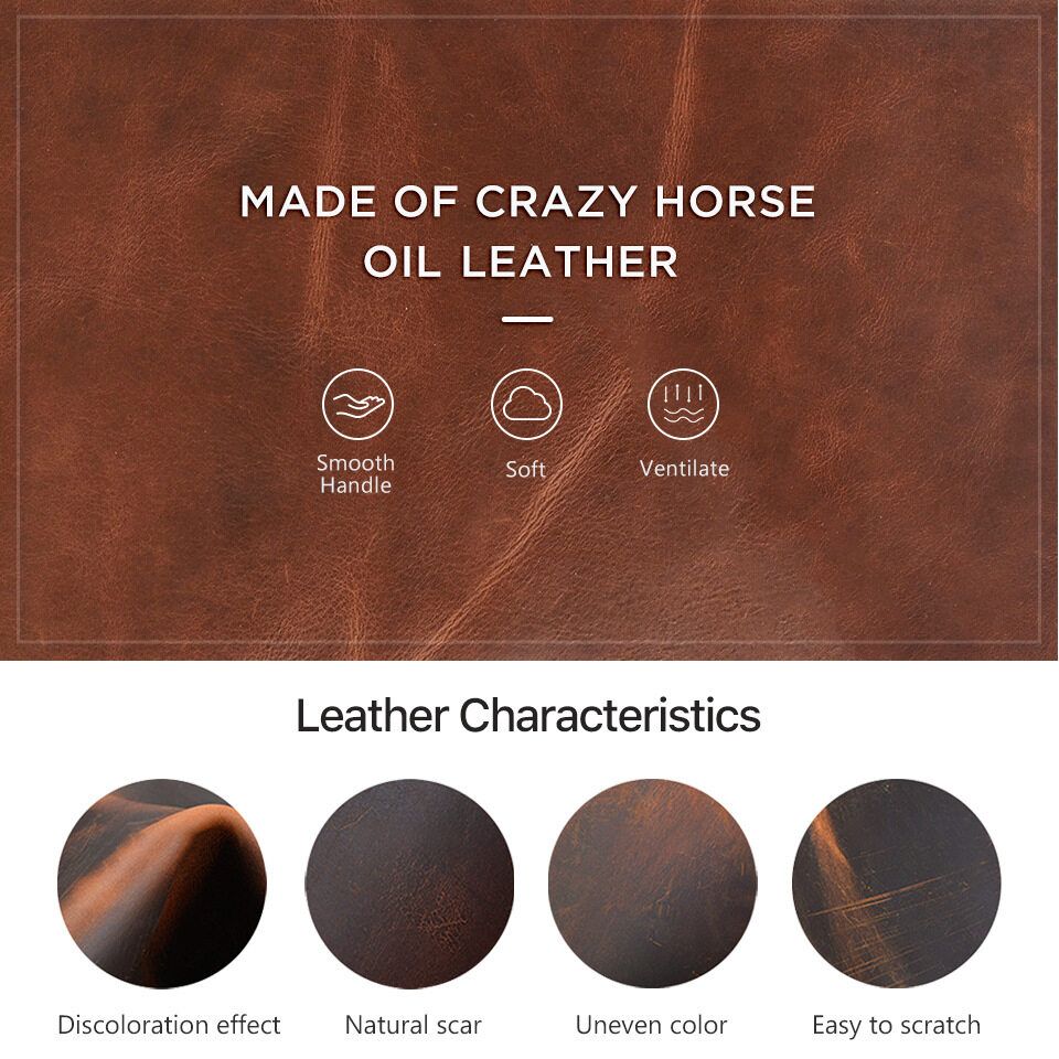 *100% Full-grain genuine leather, book design protects and disguises iPad for added security. Attention!!! Scratches are the characteristics of Crazy Horse Leather, which can be removed by wiping with hand cream.