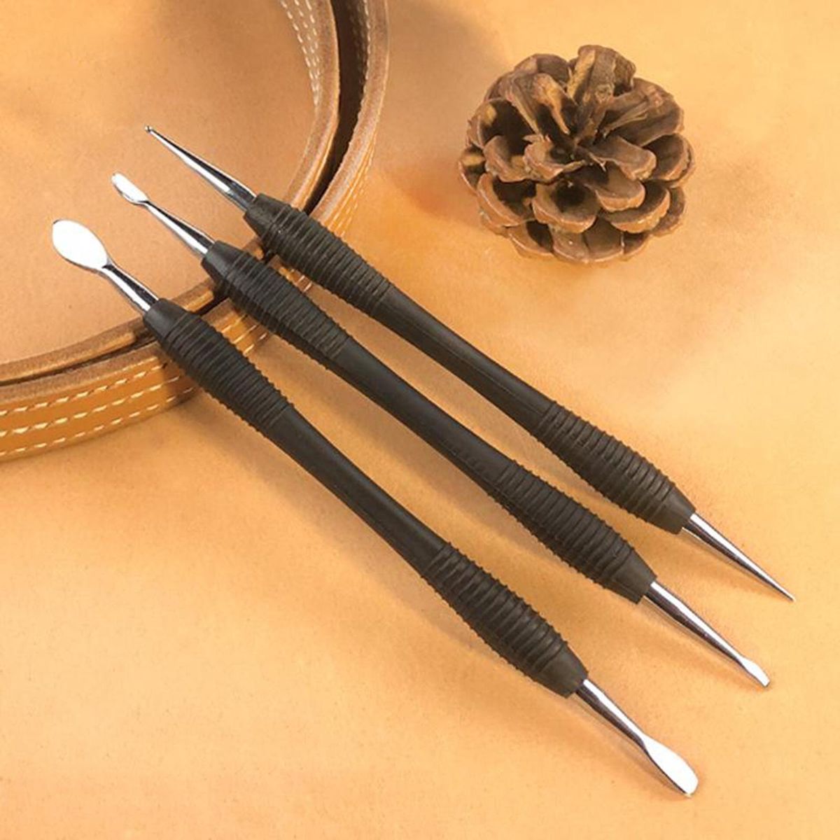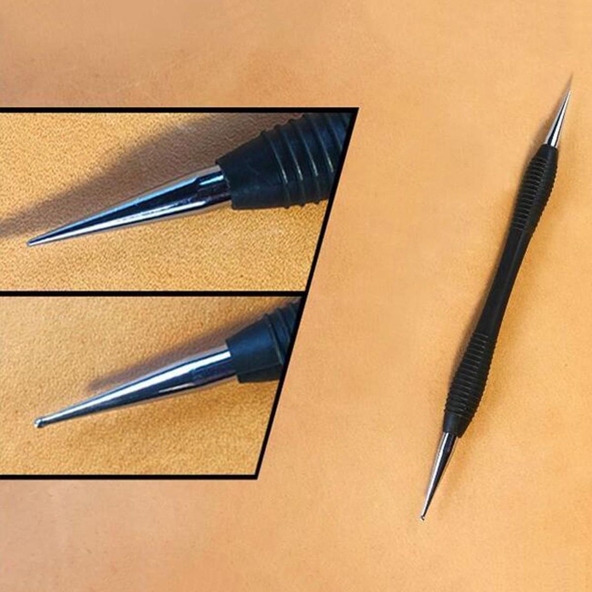 carving tool: it could be used for doing outline drawing, using a pointed tip to press the dots, making dots display, and drawing beautiful lines on the leather.