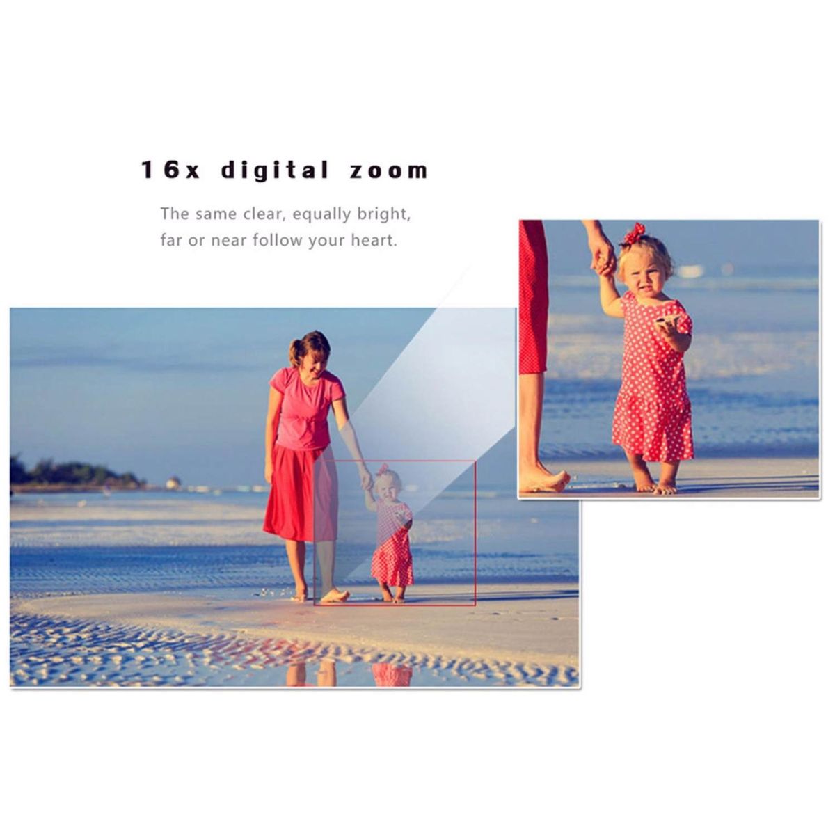 - 16X powerful digital zoom to get closer to the action.