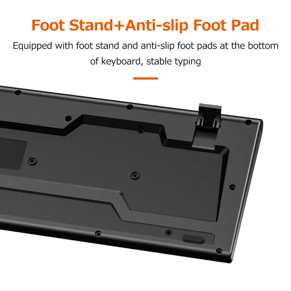 Equipped with foot stand and anti-slip foot pads at the bottom of keyboard, stable typing.