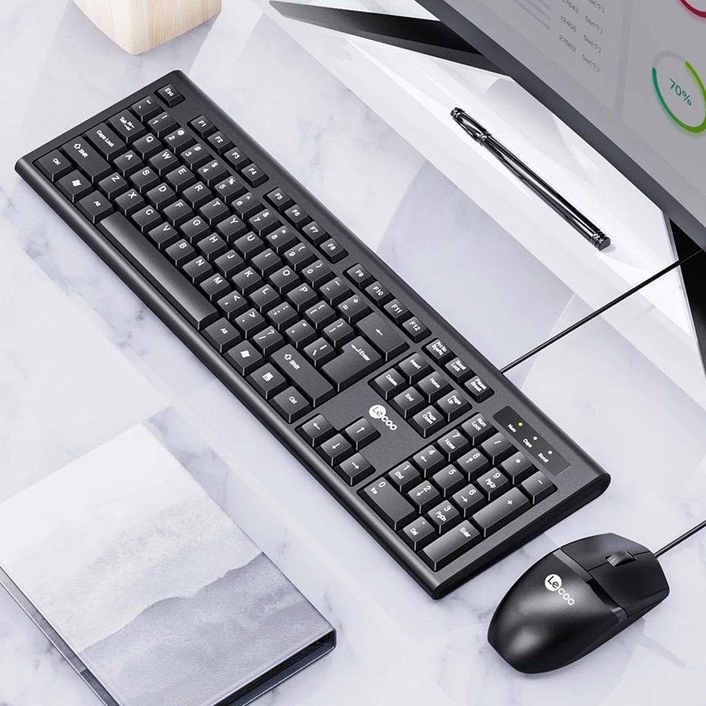 Title:Lenovo Lecoo CM101S Wired Keyboard Mouse Combo Ergonomic Keyboard Mouse Set Plug and Play Wide Compatibility Black