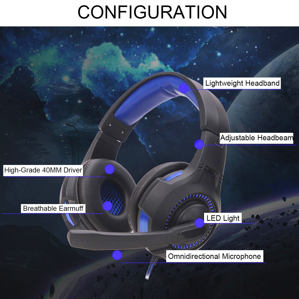 LED light effects enhance the atmosphere of gaming. Unique eye-catching sharp appearance, full of game . A high cost-performance professional gaming headset with a super cool appearance and light effect.