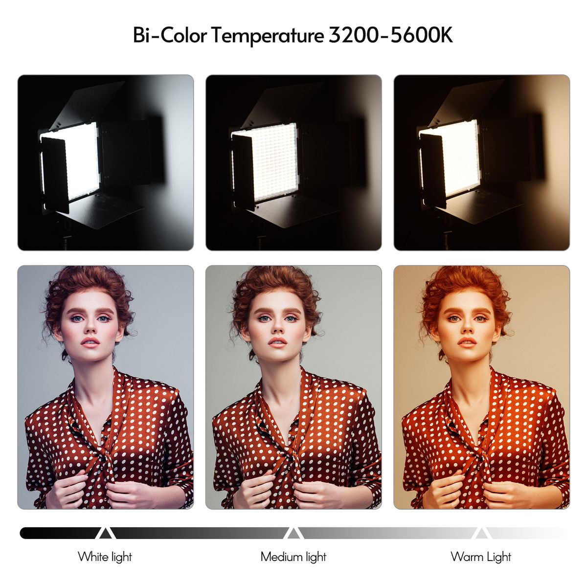 [Adjustable Color Temperature & Brightness] Bi-color temperature 3200-5600K adjustable and brightness dimmable, can be adjusted freely according to your different needs at various occasions, easy to adjust through rotating the big knob, convenient to use.