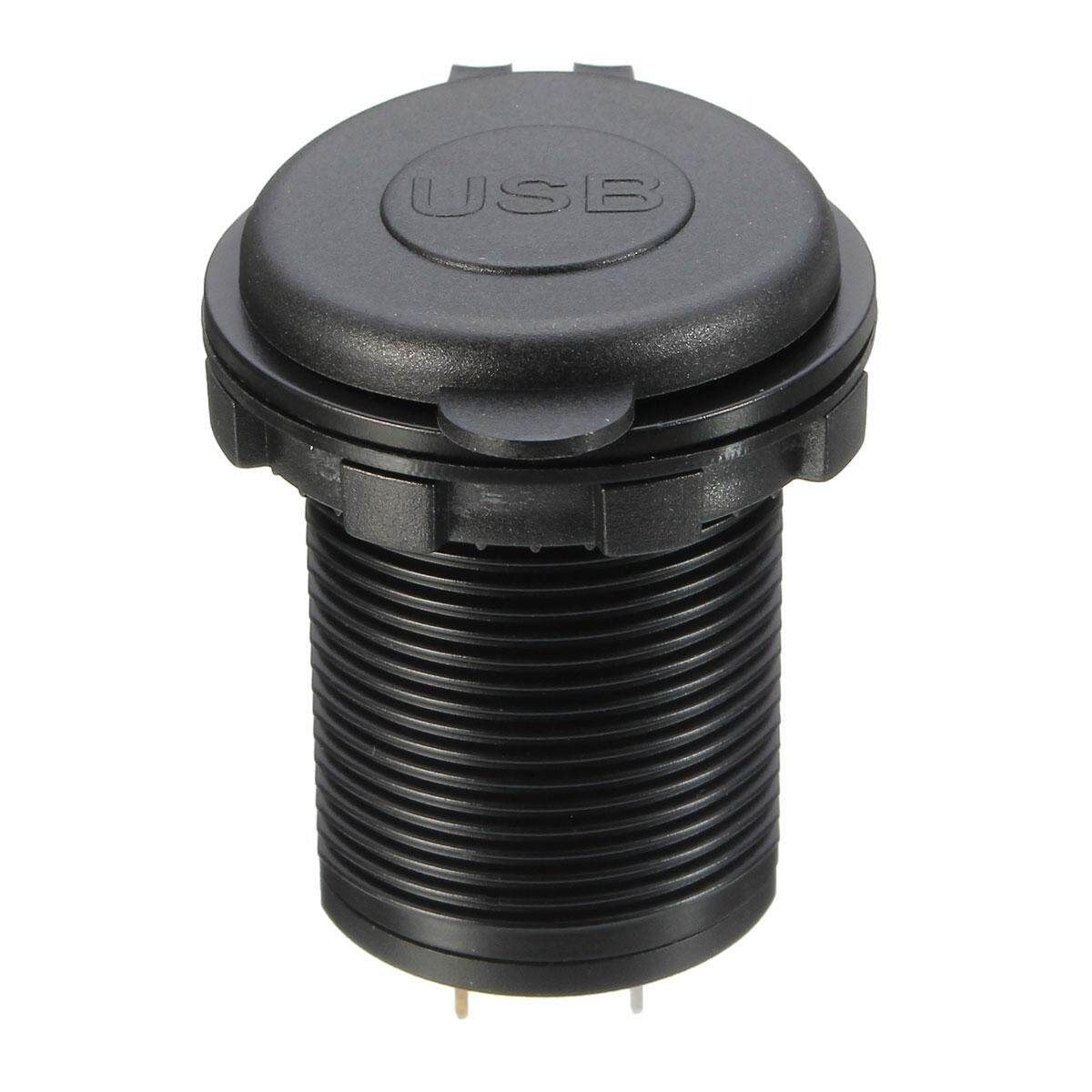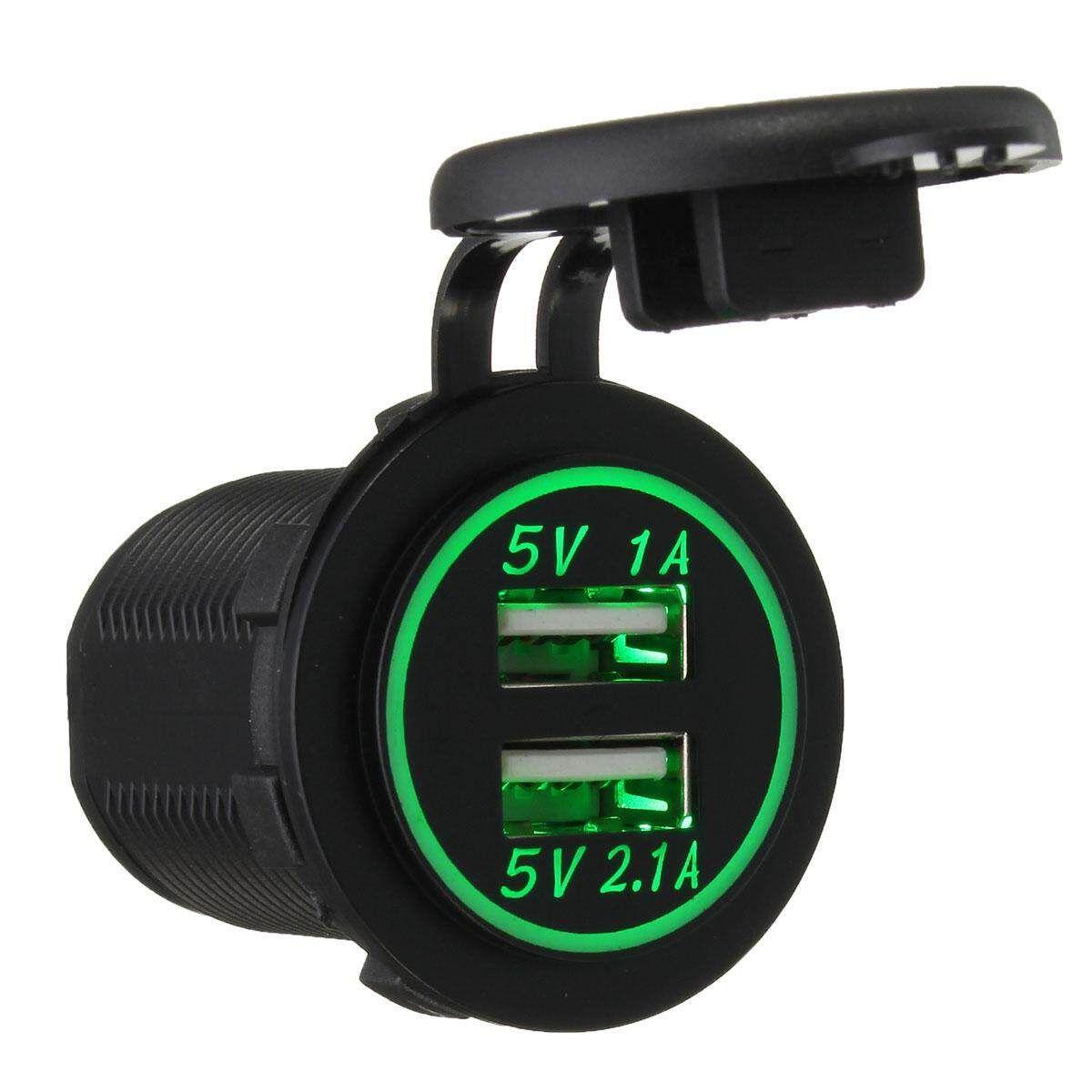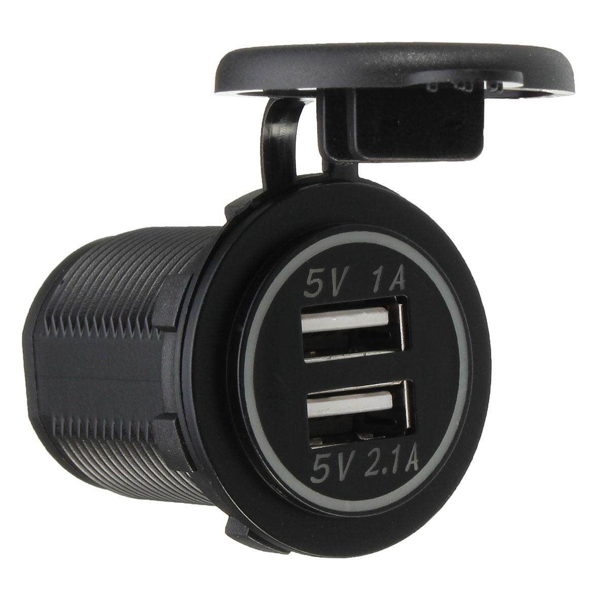 1x 12/32V Dual USB Socket Mount Car Charger Adapter 5V 2.1A+1A 2x Insulated Terminals