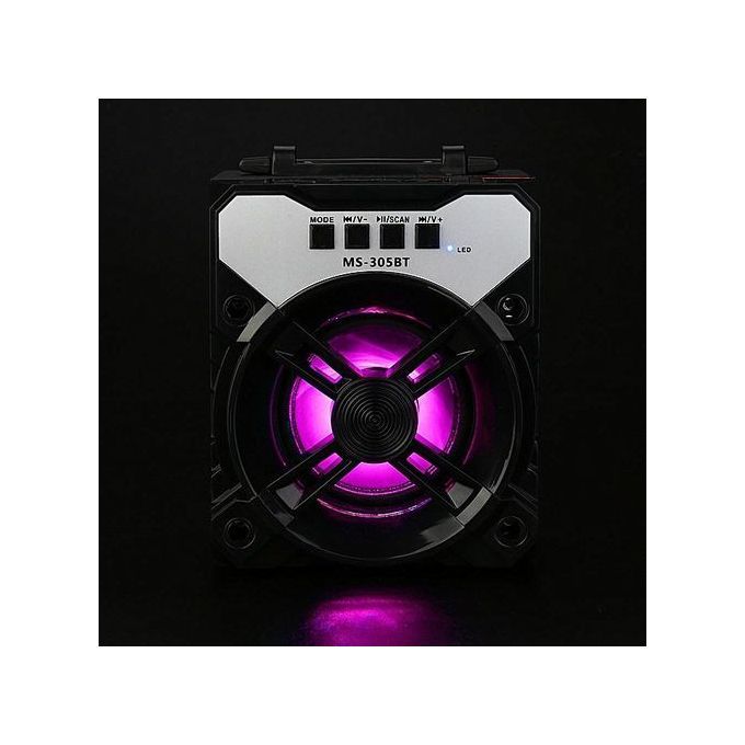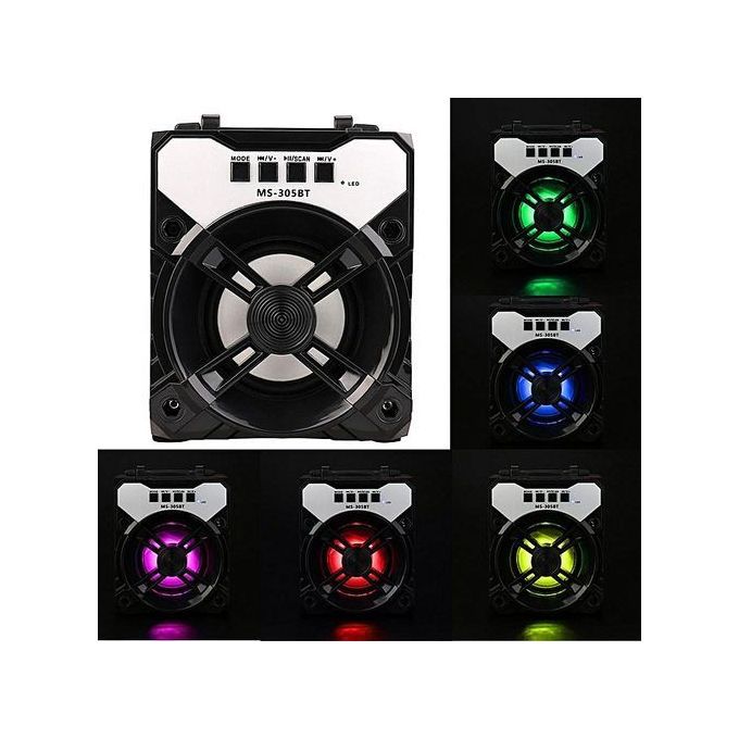 LED Multimedia Bluetooth Wireless Portable Speaker Super Bass with USB/TF/AUX/FM RadioFeatures:100% Brand new and high quality.After open the speaker,press the MODE button to switch to Radio model,then press SCAN button,it will search the channel auto matically.Second press the MODE button,it will switch to the bluetooth mode. Third press the MODE button,bluetooth will be off. Fourth press the MODE button,then will be back to the Radio model. Press the V-/V+ button for switching songs,long press for turning the volume down/up. very easy to carry,Support bluetooth wireless play functioneasy to operate. Support MP3/MP4/TF/FM/Bluetooth High quality, good frequency response. Low power consumption. Loudspeaker Output 10WSupport the phone, computer,smart phones, bluetooth mobile phone , wireless bluetooth stereo transmission music TF Card loss less audio decode ( Support MP3/WMA/APE/FLAC/AVI)AUX Audio input sealed woody speaker box. stylish panel high capacity lithium batterywith USB TF AUX FM RadioWith main volume adjustingoutput power:6wOperation Range:10mSpecification:Material : ABS material Music from TF Card : Yes Distortion :