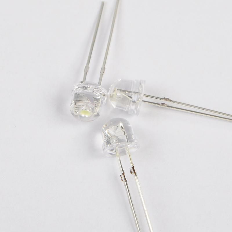Emitting diode features 5mm diameter round head, 2 terminal for reliable connection, it can create bright white Flash LED light. Perfect for color displays, indicators, diagnostic or analytical equipment and etc.