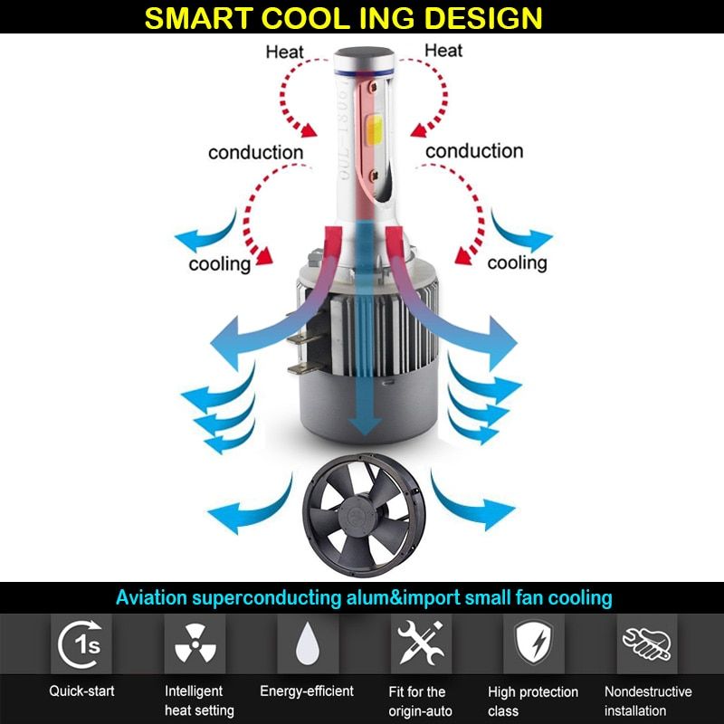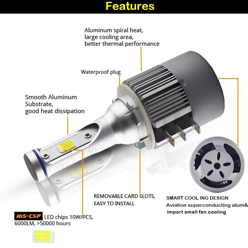Good for headlights (low beam or high beam), daytime running DRL lights The adapters are polar sensitive. Make sure that you connect the adapters in the correct orientation in order for the LED headlights to light up. Make sure that your headlight housing has enough room to accommodate the LED bulb and the fan in the back. After installation, you will hear the sound of the fan circulating. This is normal and means that your LED bulb works accordingly. For maintenance, clean the fan every 3-4 months with an air to blow out any dust or debris that has accumulated in the fan. This maintenance prolongs the lifespan of the LED bulb