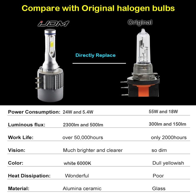 1.Top A Quality with 1YEARS Warranty by iJDM that confirm to be manufacturer defect. 2.360 degree Super bright and Wider light-emitting area 3.Low temperature long lifespan, more than 30,000 hours. 4.Built in high quality constant IC can keep the current and voltage stable 5. SRCK Nonpolar, just plug and play. 6.Replacements to standard :h15 Wedge base Model which is a small bulb 7.No damage if normal use, means long life 8.Simple installation, no warning on PC board, means error warning free or ok for canbus for 99% cars,No Hyper Flash 9.High Lumen output 2300Lm/bulb, really called amazing high brightne 10.Warning!!!...Don't be fooled by the seller and counterfeit product!!)... iJDM is the Alibaba registered brand . We never authorize other seller to sell our products... Please check the seller name before you place the order... Select the iJDM instead of others who list here not identical product by lowering prices only a little to take advantage of the reputation built by iJDM . The counterfeit bulb doesn't even have driving IC and resistor. It not safe