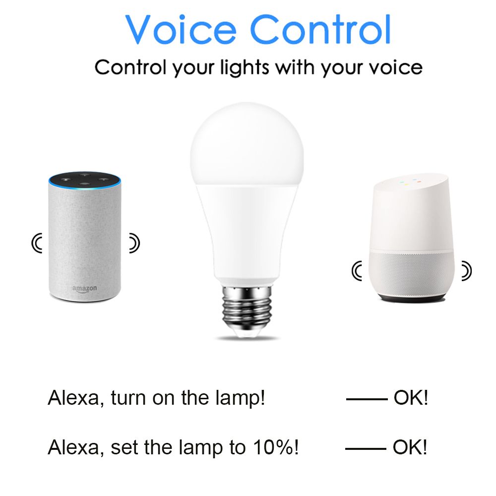 LED Bulb Lamps E27 E14 B22 220V Light Bulb Smart Google Assistant Voice Control APP WiFi Control 10W Brightness LED Spotlight