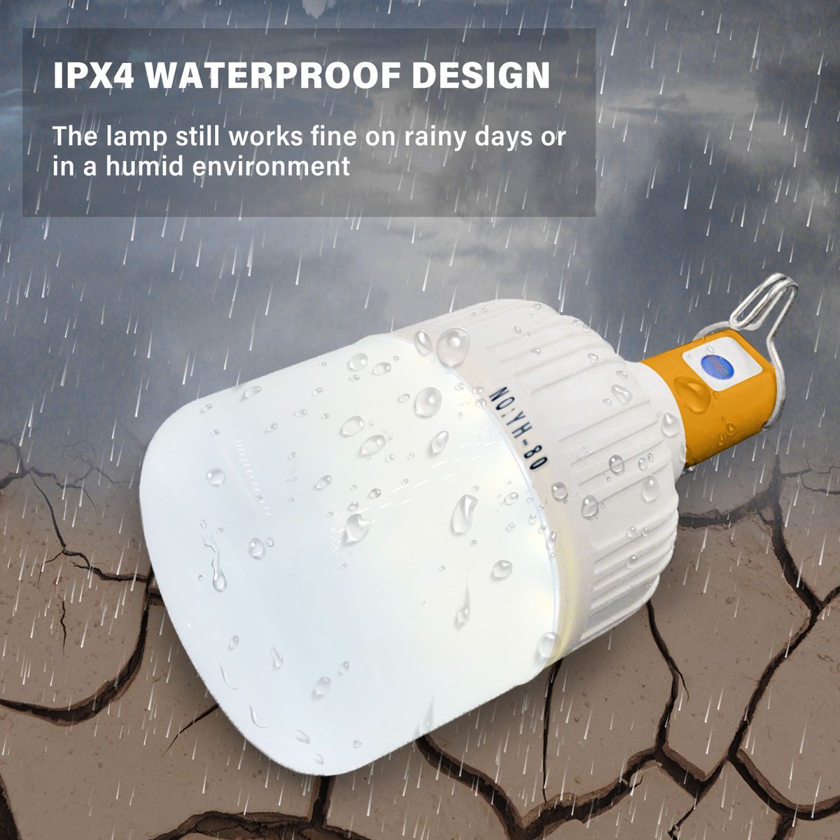 IPX4 WATERPROOF: The charging interface, switch button and light body are all waterproof. The light still works fine when there is some water spilling on it. It is safe to use this light on rainy days or in a humid environment.