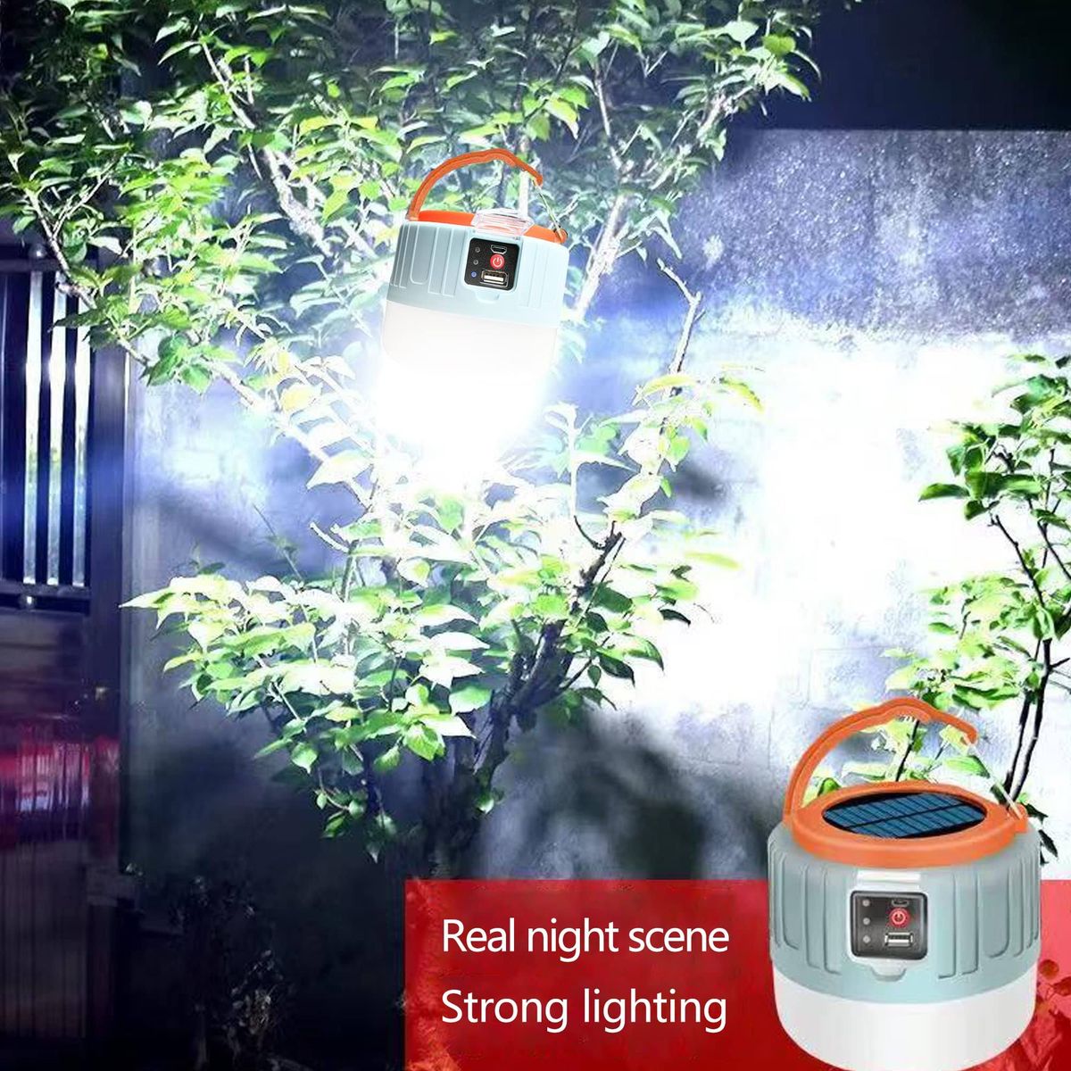 LED Camping Lights Rechargeable Camping Lantern with Solar Light 3 Light Modes Waterproof Emergency Light Outdoor Tent Light White【3 Lighting Modes】This camping lantern comes with full brightness (280 lm), half brightness (140 lm) and SOS mode (260 lm), which respectively can lasts about 5-11 hours. A row of blue indicator light shows battery level so you can charge it timely.【Solar + USB Charing】This solar LED light not only can be charged by solar energy, but also can be charged via USB. 【Emergency charging 】 Built-in rechargeable polymer battery (USB cable included), with a 5V 1A USB charging port on the lantern. Support 5V DC charger adapter (not included). This solar-powered camping lamp is not only a lighting device, but also a charging bay for a mobile phone or tablet in an emergency.【Ultralight & Portable】: The solar camping lantern is lightweight and foldable. This camping light is made from rugged TPU to endure tough environments, it is 100% WATERPROOF and DUSTPROOF. A perfect small portable lantern for camping, working, fishing, dog walking, Shelters, outdoor activities and emergency lighting, you can take it anywhere you need a handy light.