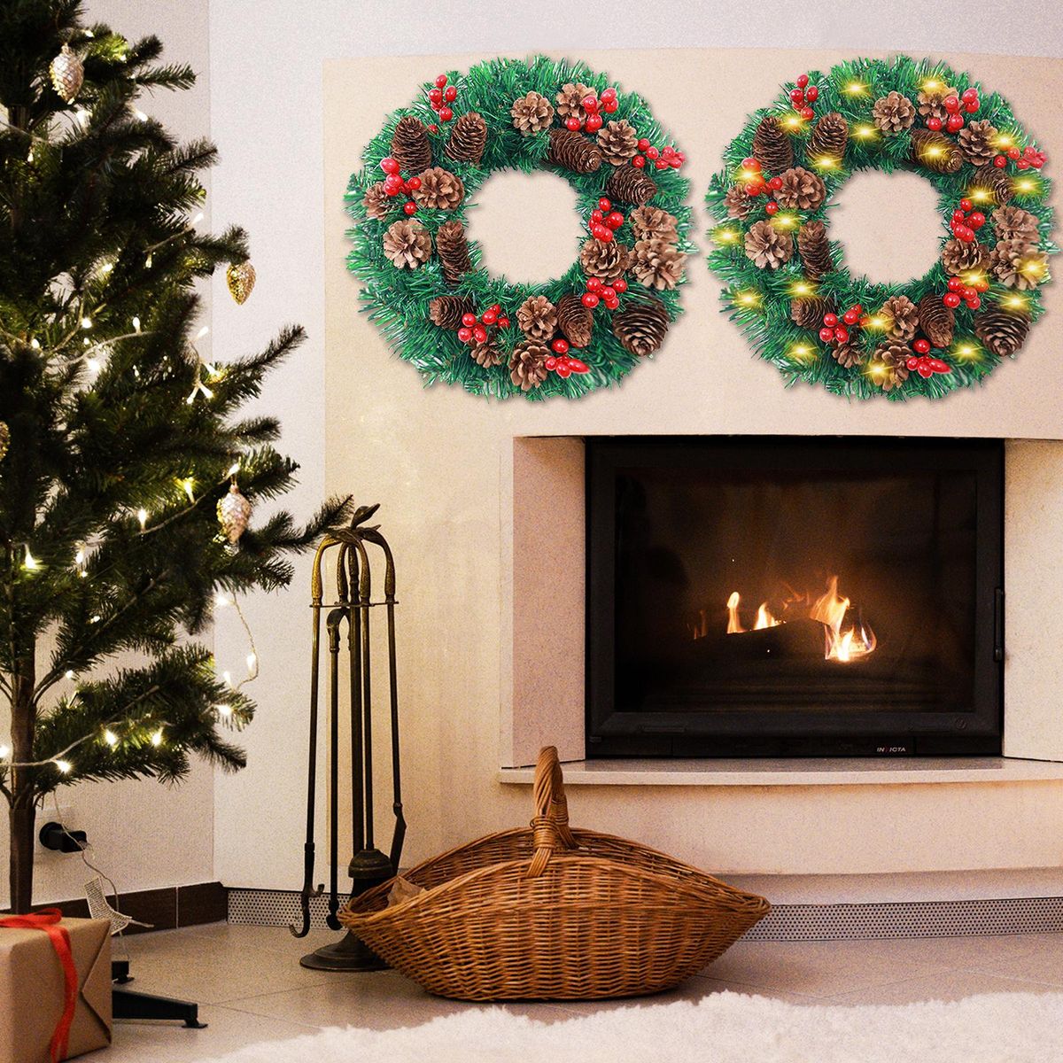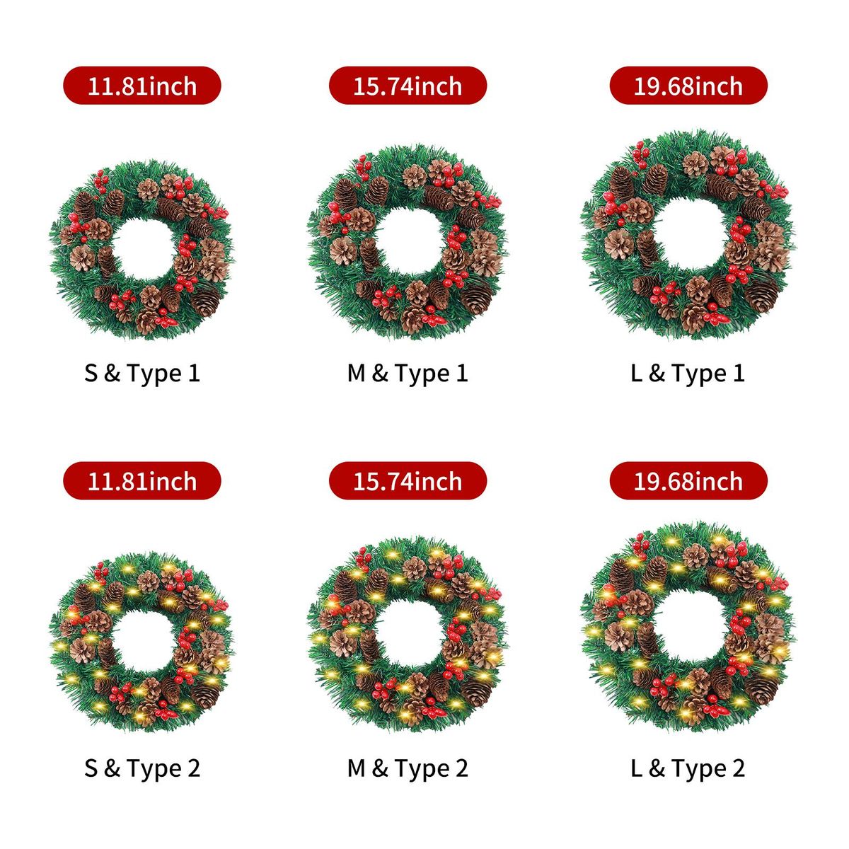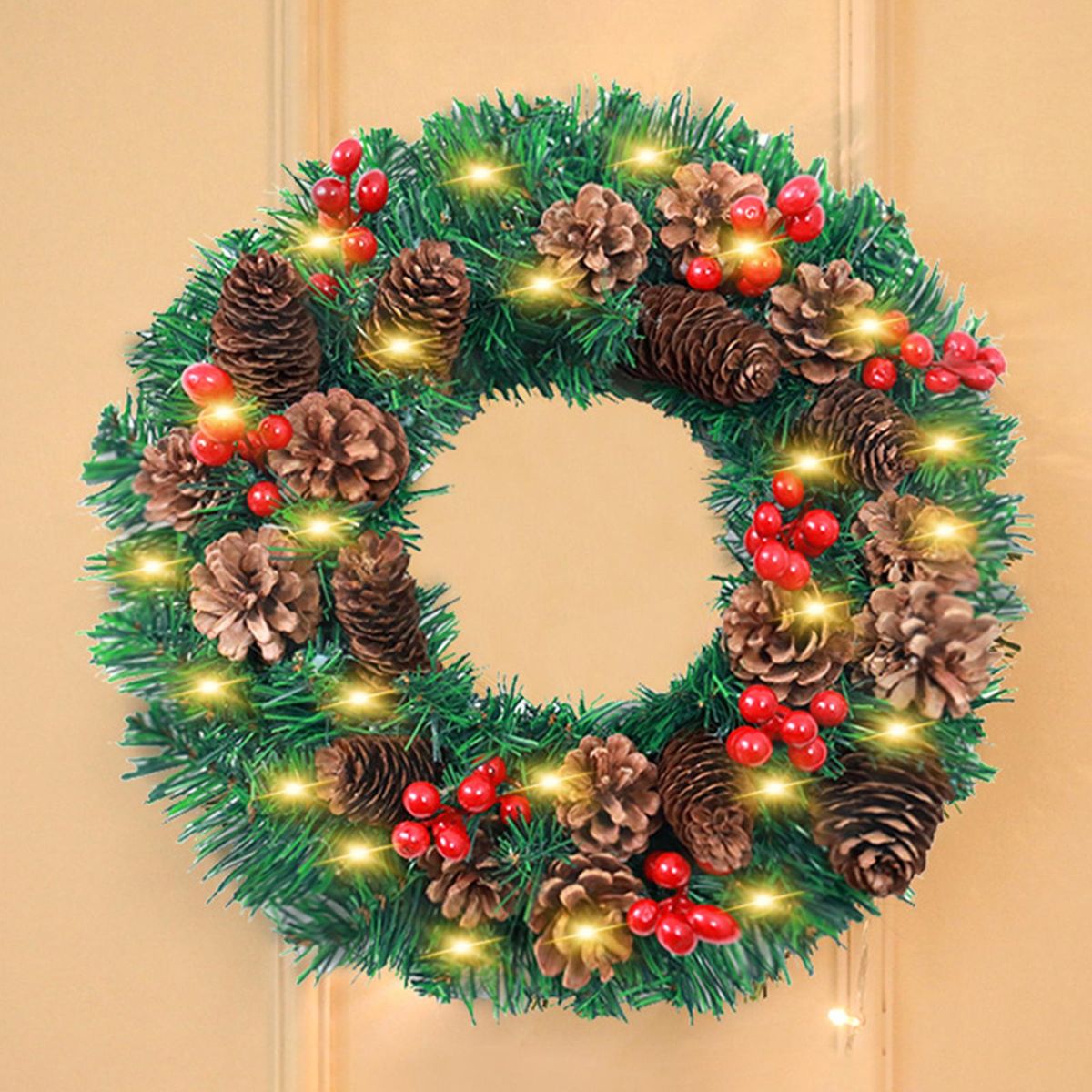 Buy LED Christmas Wreath With Battery Powered String Light Pine Cones Red Fruit 20 Inch Merry Christmas Hanging Garland Artificial Wreath for Front Door Wall Party Decoration in Nigeria