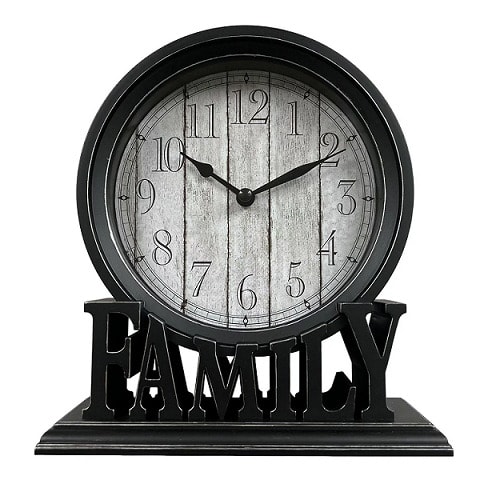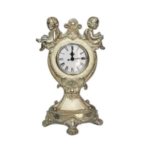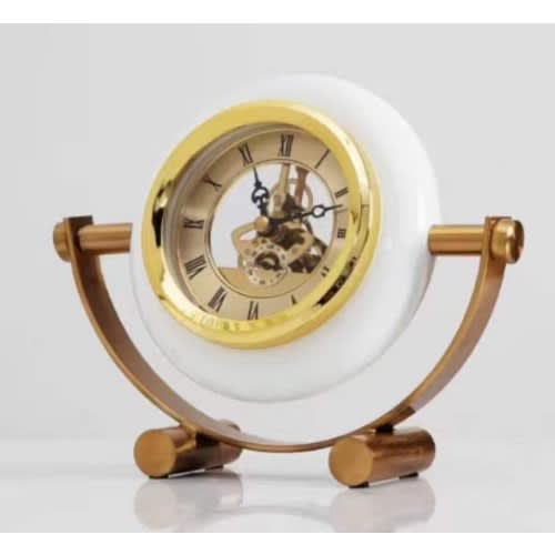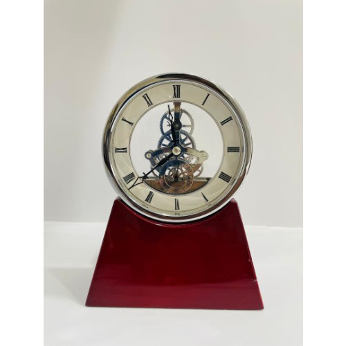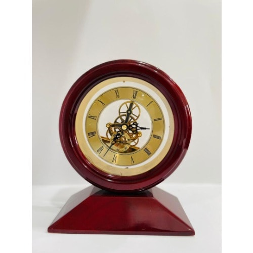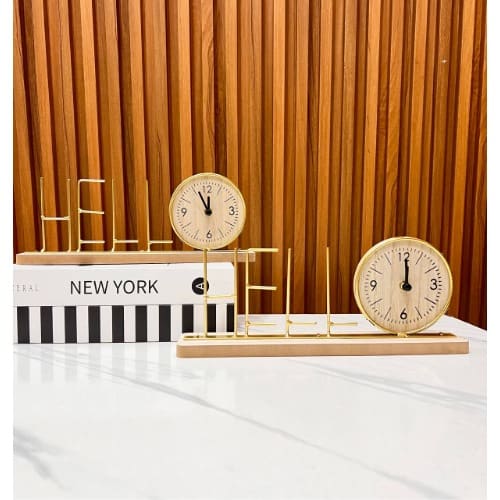 HOME CLOCK DECOR STAND.Also available in BLACK colour..Beautiful decor accessory .Home/Office/Hotel/Lounge decor accent..Material: Metal and Wood.The clock works. It requires 1AA battery (not included)..