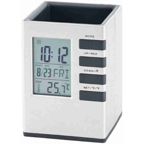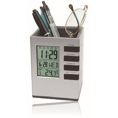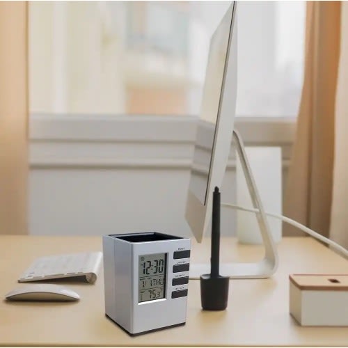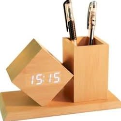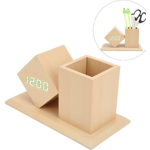 Multi Function - Desktop digital clock designed with multiple functions, combining time, temperature and alarm, with a pen holder to store your pens, rulers, nail clippers and other small items.Dual Power Supply -This desktop pen holder clock with dual power supply, 3 AAA batteries (not included) power supply, to meet your different needs.Decorative - Wooden pen container clock, compact design, simple and stylish, also available for home furnishings, suitable for office, bedroom, living room, study and other places.Fine Workmanship This pen holder alarm clock is made of premium wood, fine polishing, no burrs, will not scratch your hands, large base, can be placed on the desktop stable.