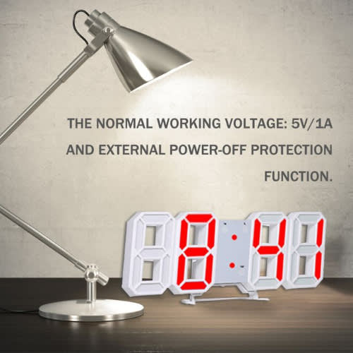 Model DS-6609 Multi-Function Large 3D LED Digital Wall Clock Alarm Clock Size 8.71cm x 21.49cm / 3.43" x 8.46" Color Multi Digital Display Large 3D LED Light Display Function Large Time Display Alarm Function Snooze Function(5-60minutes) Night Mode ( Default: 18:00~6:00) 3 Levels of Brightness Memory Time Function Hours 12 / 24 Hours Selectable LED Light 54 LED Light Beads Voltage 5V 1A Power By USB Cable Features: Adjustable Brightness: High brightness with 3 intensity levels to accommodate different needs. Multi-function: Time display, snooze alarm & night light all in one to give you convenience and save space. Energy-saving & Contemporary: Ultra-low power consumption LED, low cost, only need 5V even you can connect USB port. High Bright LED: Clear white light color, can remote view, no blue light. Memory Function: Built-in lithium battery, with a time memory function, more convenient for your life.