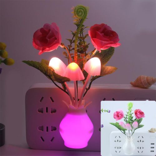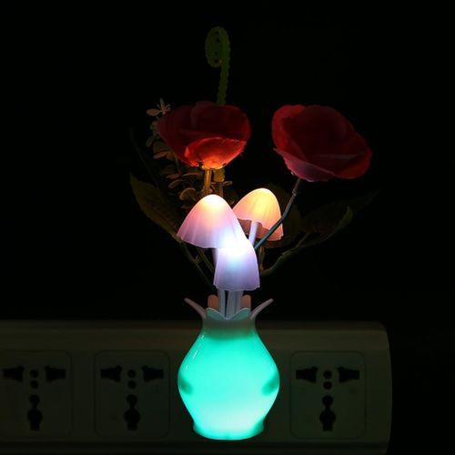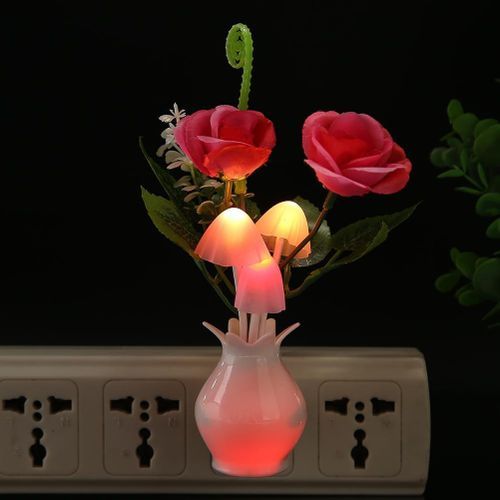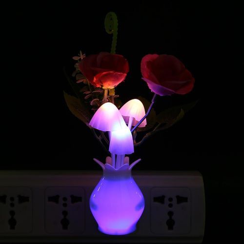 LED Colorful Flower Night Lights Luminous Lamp EU Plug Sensor Home Bedroom Decor