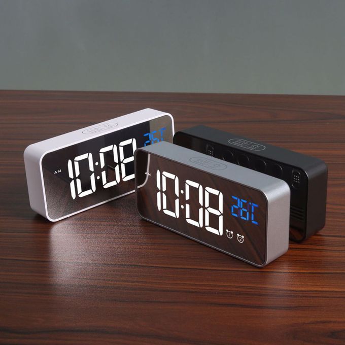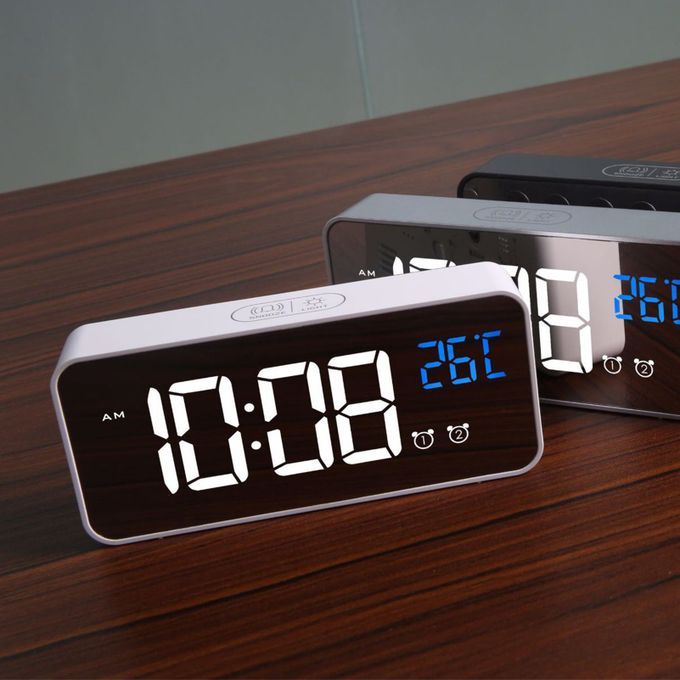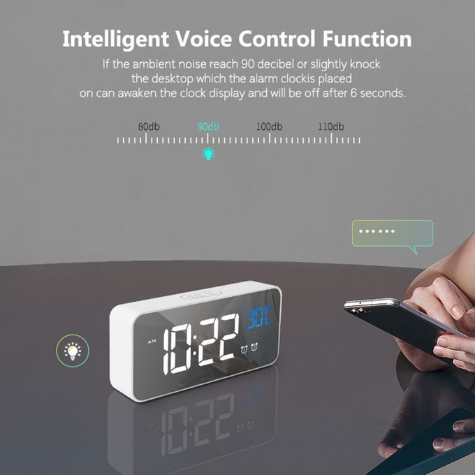 Voice-controlled energy-saving mode. When the surrounding environment is as high as 90 decibels or gently tap on the desktop where the clock is placed, the clock can be woken up and automatically extinguished after 10 seconds.