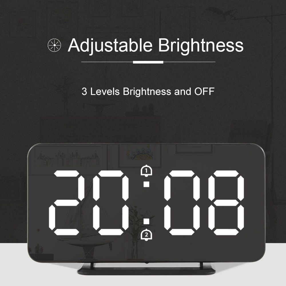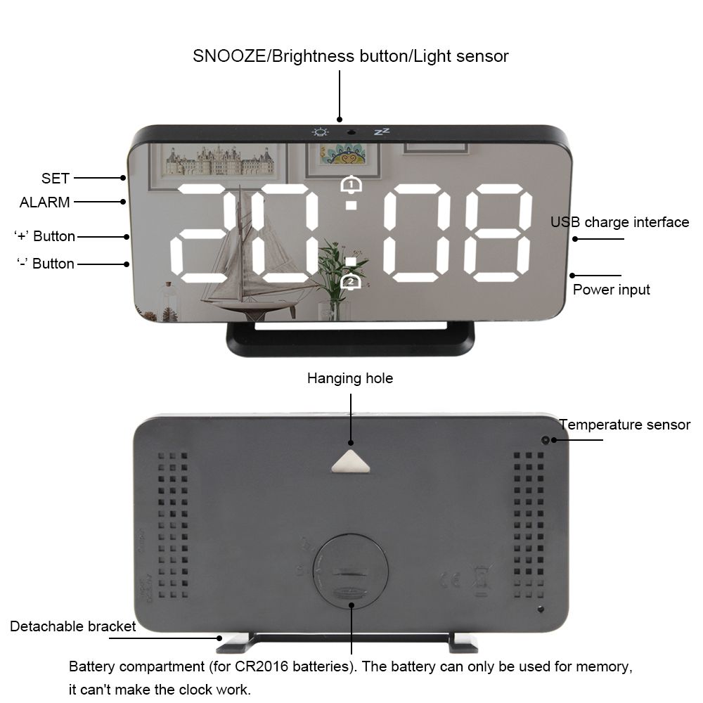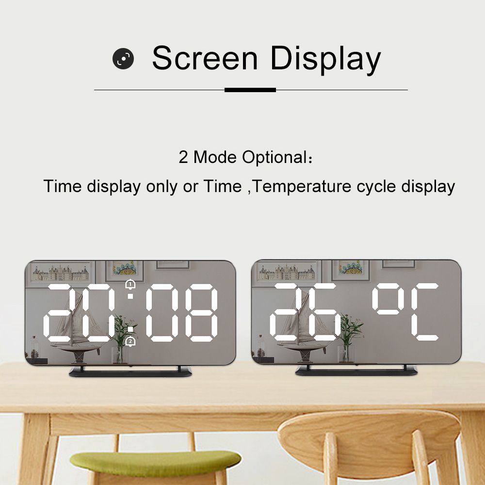 LED digital alarm clock with temperature display function, elegant mirror suface, large white fonts for easy reading. Lightweight and portable, not only for home use such as bedroom, living room and children\'s room, but also for travel.