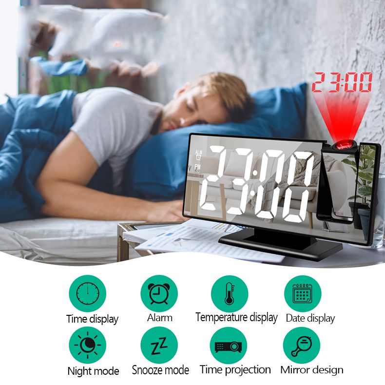 2. Time, alarm, snooze, backlight, projection, temperature