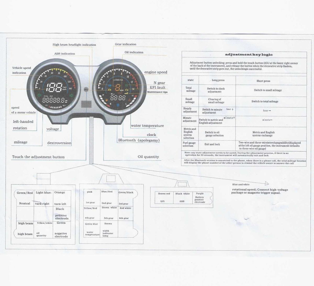 Mileage: ODO (total mileage) maximum display mileage is 99999km, TRIP (subtotal mileage) maximum display mileage is 999.9km, which can switched between metric and.