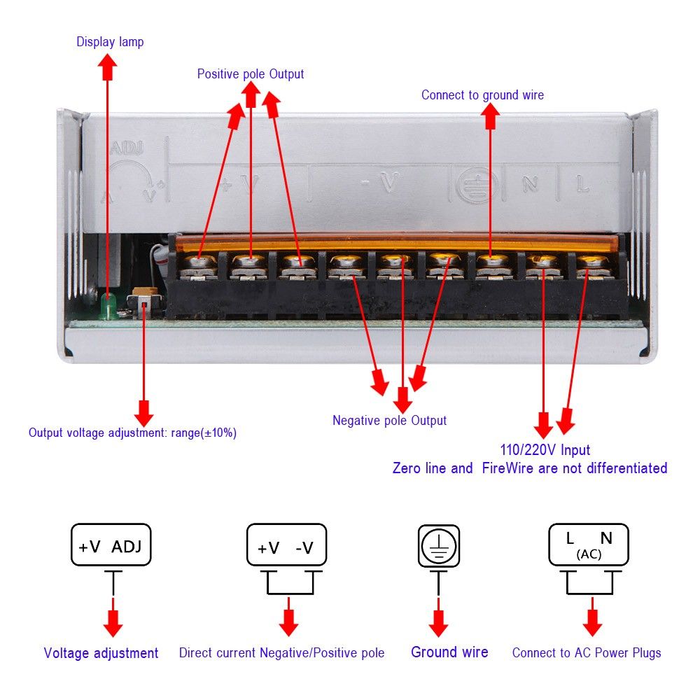 Widely used as the power adapter for Led strip, LED display, billboard, industrial equipment, etc. IN-DOOR USE ONLY!