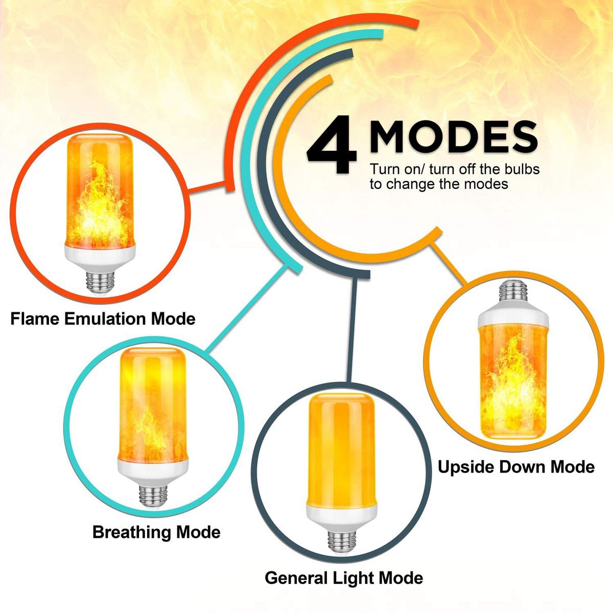 [4 wonderful modes]-The flame effect LED bulb has 4 different modes, namely breathing mode, conventional lighting mode, flame simulation mode and upside down mode. The LED bulb is very easy to use, you can select the appropriate mode according to different times by simply turning on and off the switch mode.