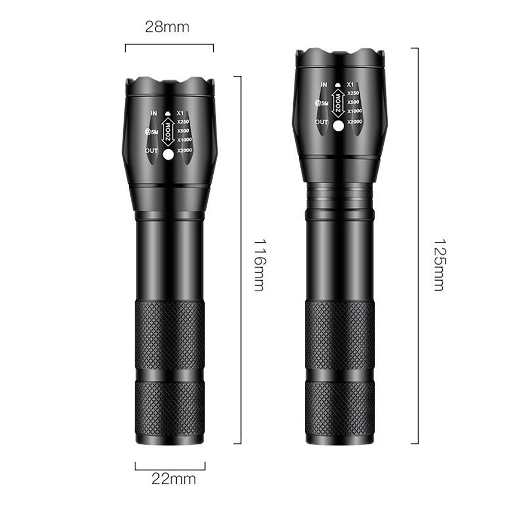 Charger : RechargeableFocal Length : AdjustableLight Source : LED BulbsWattage : 15WBody Material : Aluminum AlloyCertification : ceSwitch Mode : High/Middle/LowZoom : YesModel of LED Beads : T6Flashlight Type : camping,hiking,fishingWaterproof : YesLumen : 1000Support Dimmer : 2-4 filesLighting Distance : 200-500 mBrand Name : NoEnName_NullOrigin : Mainland ChinaItem Type : Flashlightsfeature 1 : super powerful flashlightfeature 2 : High power led flashlightsfeature 3 : Camping lanternfeature 4 : Rechargeable led flashlightfeature 5 : torch lightfeature 6 : Led flashlightSpecificationMaterial: aluminum alloyMaximum brightness: 1200LMWorking time: 3-6 hoursLighting Mode: 3 Modes (High - Medium - Strobe)Irradiation distance: 100-300mWaterproof rating: IPX5Size: 11.1cm*28mm*22mmNet weight: 87 gramsZoomable :YesAluminum Alloy MaterialAluminum alloy shell, strong and durableUSB chargingBuilt-in high capacity 18650 battery, usb charging.Charging time:2-3 hoursWorking time: 3-6 hoursZoomableZoom out: floodlight mode, can light up a entire roomZoom in: focus mode, lighting distance up to 300mIPX5 Waterproof3 Lighting ModesHigh - Medium - StrobeWidely usModel Number : T6Function : Shock Resistant,Self Defense,Hard LightCharger : RechargeableFocal Length : AdjustableLight Source : LED BulbsWattage : 15WBody Material : Aluminum AlloyCertification : ceSwitch Mode : High/Middle/LowZoom : YesModel of LED Beads : T6Flashlight Type : camping,hiking,fishingWaterproof : YesLumen : 1000Support Dimmer : 2-4 filesLighting Distance : 200-500 mBrand Name : NoEnName_NullOrigin : Mainland ChinaItem Type : Flashlightsfeature 1 : super powerful flashlightfeature 2 : High power led flashlightsfeature 3 : Camping lanternfeature 4 : Rechargeable led flashlightfeature 5 : torch lightfeature 6 : Led flashlightSpecificationMaterial: aluminum alloyMaximum brightness: 1200LMWorking time: 3-6 hoursLighting Mode: 3 Modes (High - Medium - Strobe)Irradiation distance: 100-300mWaterproof rating: IPX5Size: 11.1cm*28mm*22mmNet weight: 87 gramsZoomable :YesAluminum Alloy MaterialAluminum alloy shell, strong and durableUSB chargingBuilt-in high capacity 18650 battery, usb charging.Charging time:2-3 hoursWorking time: 3-6 hoursZoomableZoom out: floodlight mode, can light up a entire roomZoom in: focus mode, lighting distance up to 300mIPX5 Waterproof3 Lighting ModesHigh - Medium - StrobeWidely usModel Number : T6Function : Shock Resistant,Self Defense,Hard LightCharger : RechargeableFocal Length : AdjustableLight Source : LED BulbsWattage : 15WBody Material : Aluminum AlloyCertification : ceSwitch Mode : High/Middle/LowZoom : YesModel of LED Beads : T6Flashlight Type : camping,hiking,fishingWaterproof : YesLumen : 1000Support Dimmer : 2-4 filesLighting Distance : 200-500 mBrand Name : NoEnName_NullOrigin : Mainland ChinaItem Type : Flashlightsfeature 1 : super powerful flashlightfeature 2 : High power led flashlightsfeature 3 : Camping lanternfeature 4 : Rechargeable led flashlightfeature 5 : torch lightfeature 6 : Led flashlightSpecificationMaterial: aluminum alloyMaximum brightness: 1200LMWorking time: 3-6 hoursLighting Mode: 3 Modes (High - Medium - Strobe)Irradiation distance: 100-300mWaterproof rating: IPX5Size: 11.1cm*28mm*22mmNet weight: 87 gramsZoomable :YesAluminum Alloy MaterialAluminum alloy shell, strong and durableUSB chargingBuilt-in high capacity 18650 battery, usb charging.Charging time:2-3 hoursWorking time: 3-6 hoursZoomableZoom out: floodlight mode, can light up a entire roomZoom in: focus mode, lighting distance up to 300mIPX5 Waterproof3 Lighting ModesHigh - Medium - StrobeWidely us