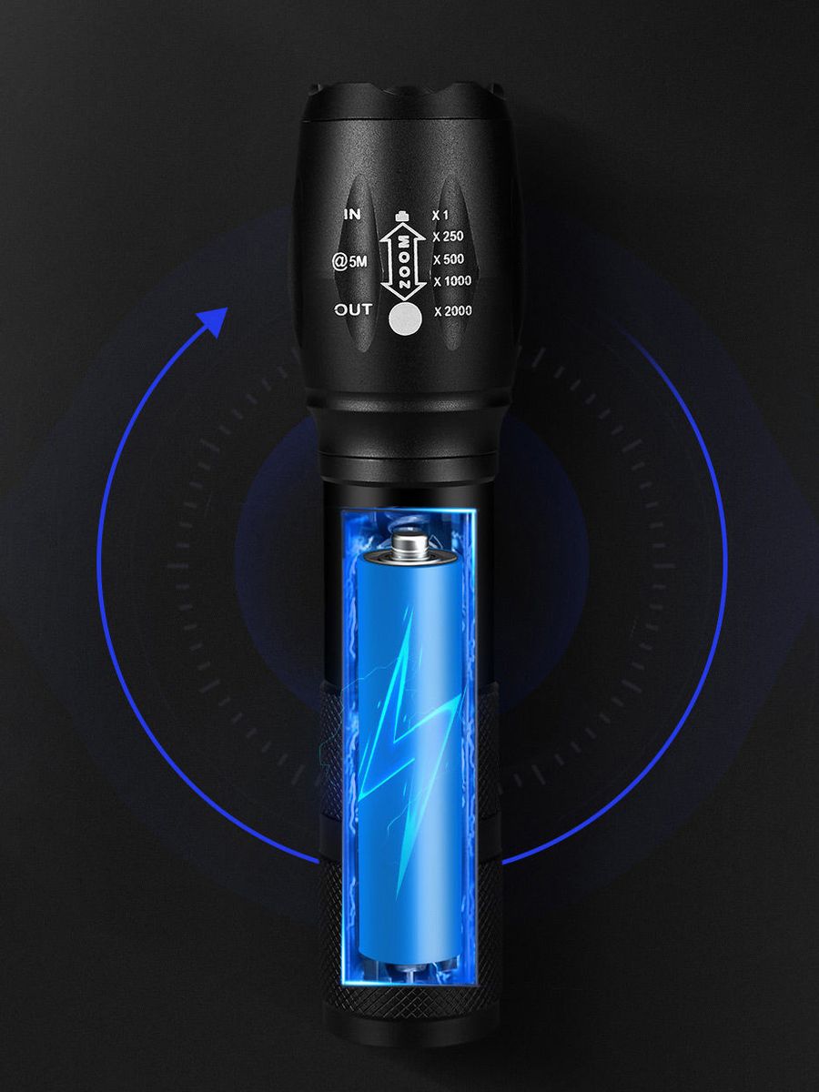 Zoomable :YesAluminum Alloy MaterialAluminum alloy shell, strong and durableUSB chargingBuilt-in high capacity 18650 battery, usb charging.