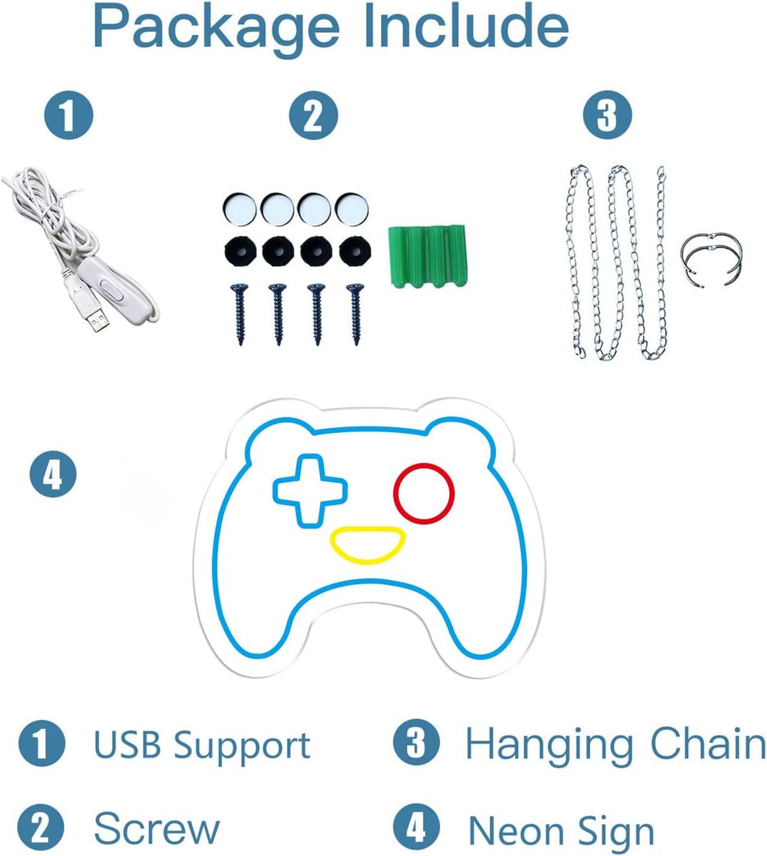 [Atmosphere neon light] -You can easily use the attached hooks and chains to hang the LED neon lights on the wall, windows and game accessories in the bar area of the player's room decoration or gathering.