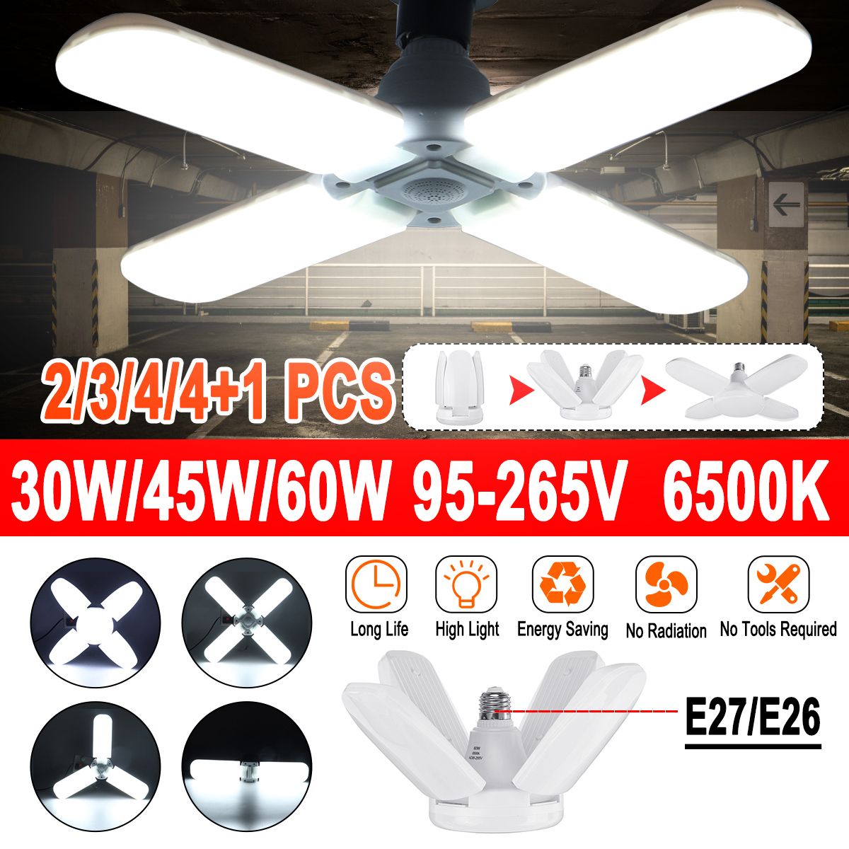 Product Name: 6500K LED Garage Lights Shop Utility Ceiling Deformable Daylight LEDs Lamp For Garage Basement Workshop