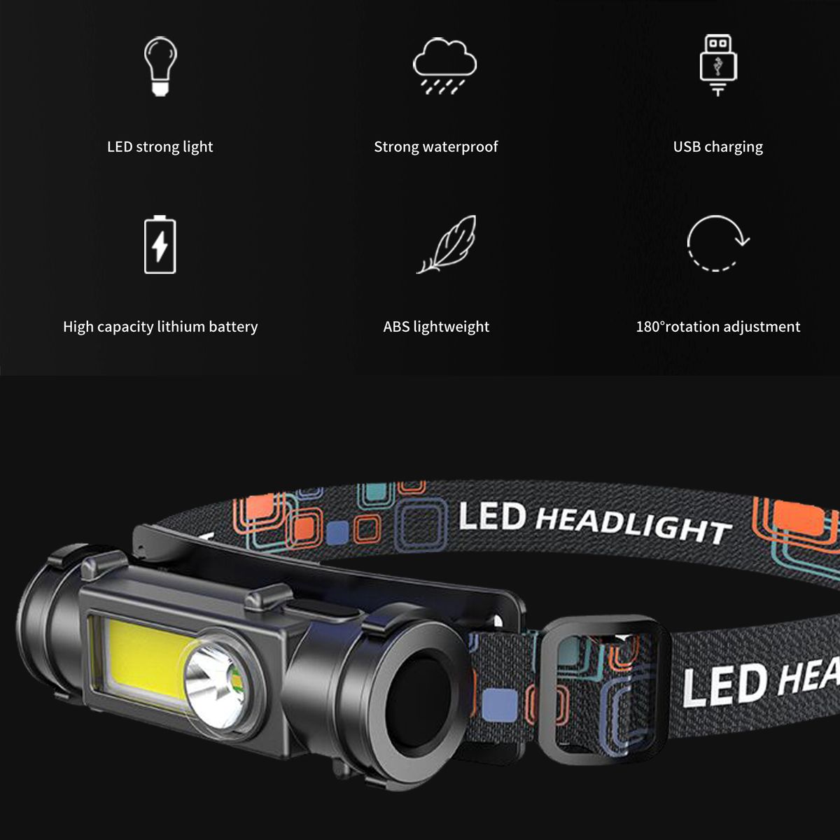 High brightness headlights, liberate your hands, clear long range, 180 degrees free rotation, adjustable lighting angle.