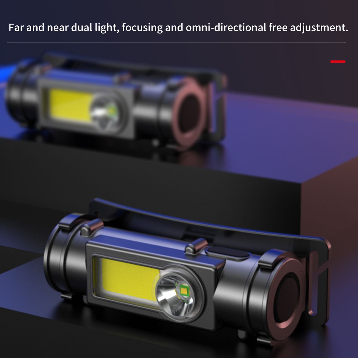 Far and near dual light, COB light sources, 200LM high brightness, focusing and omni-directional free adjustment.